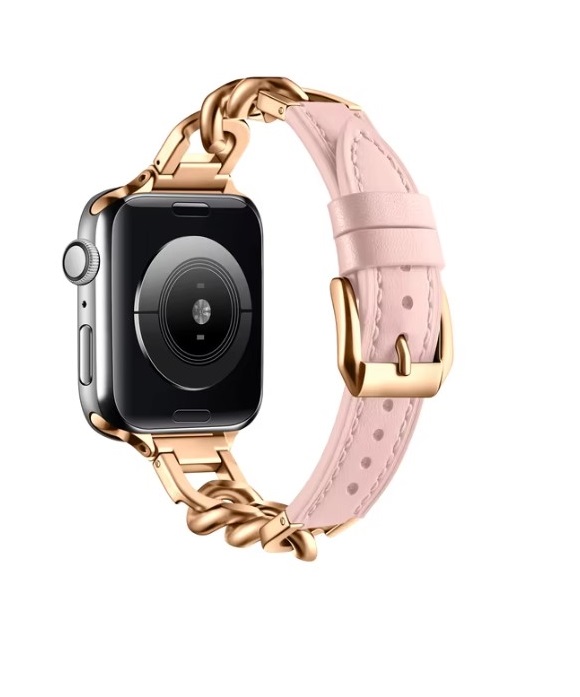 Brat Koș din Piele cu Lanț - Roz deschis, 22 mm