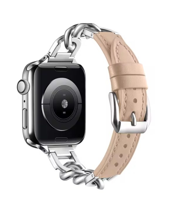 Brat Koș din Piele cu Lanț pentru Apple Watch - Bej, 42mm, 44mm, 45mm, 49mm