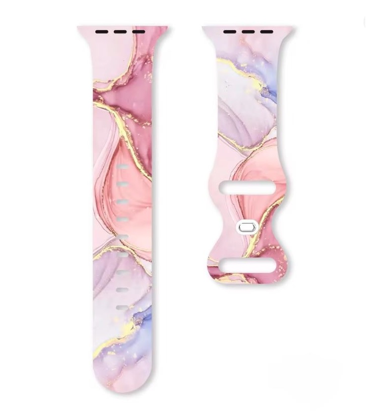 Brățară din silicon cu model marmorat pentru Apple Watch - Roz, 38mm, 40mm, 41mm