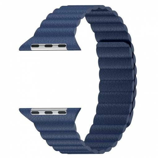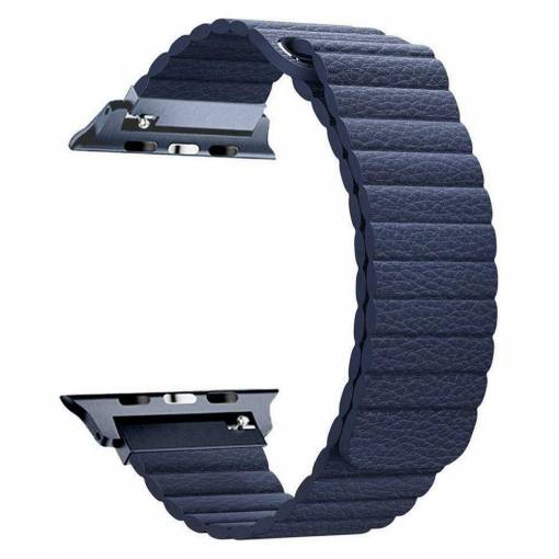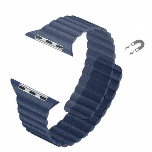 Brățară din piele magnetică pentru Apple Watch - Albastră 42mm, 44mm, 45mm, 49mm