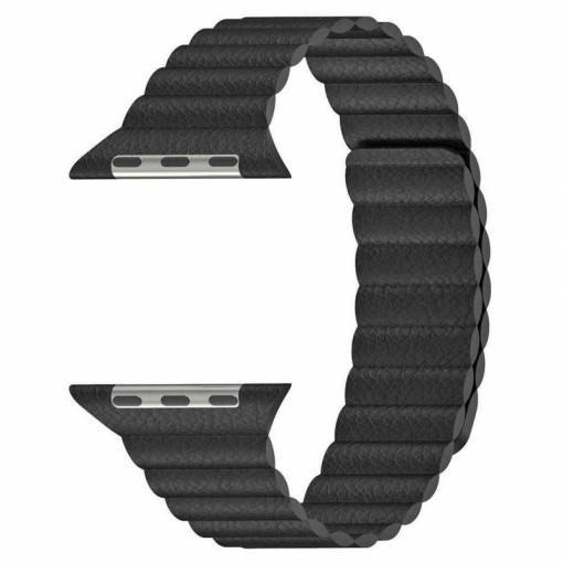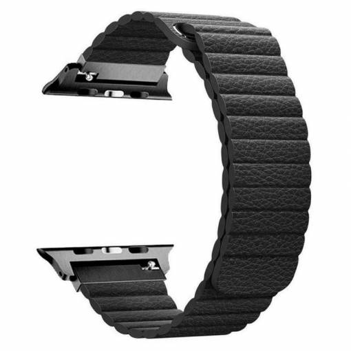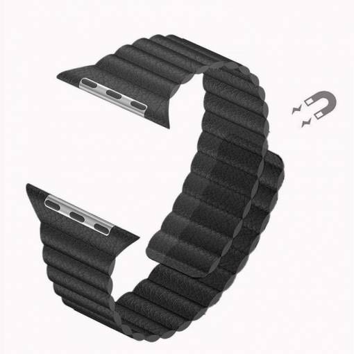 Brățară din piele magnetică pentru Apple Watch - Neagră 42mm, 44mm, 45mm, 49mm