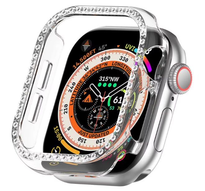 Cadru de protecție cu pietre pentru Apple Watch 10, 42 mm - transparent
