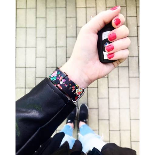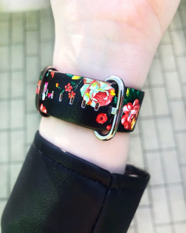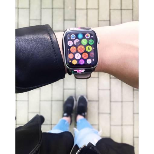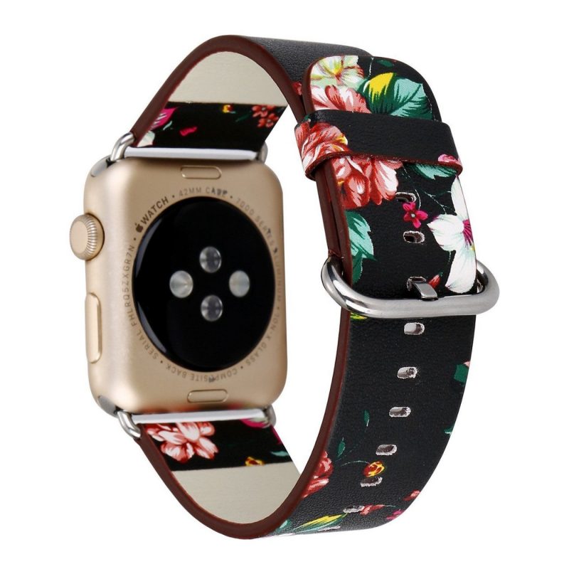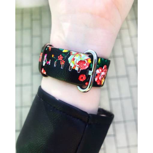 escală din piele florală pentru Apple Watch - Negru 42mm, 44mm, 45mm, 49mm