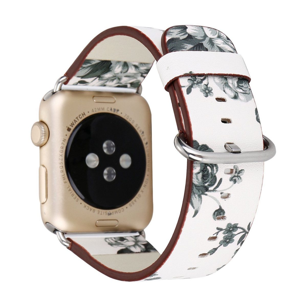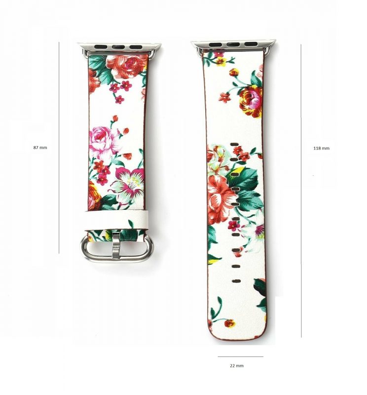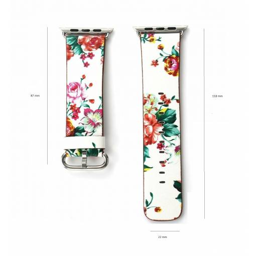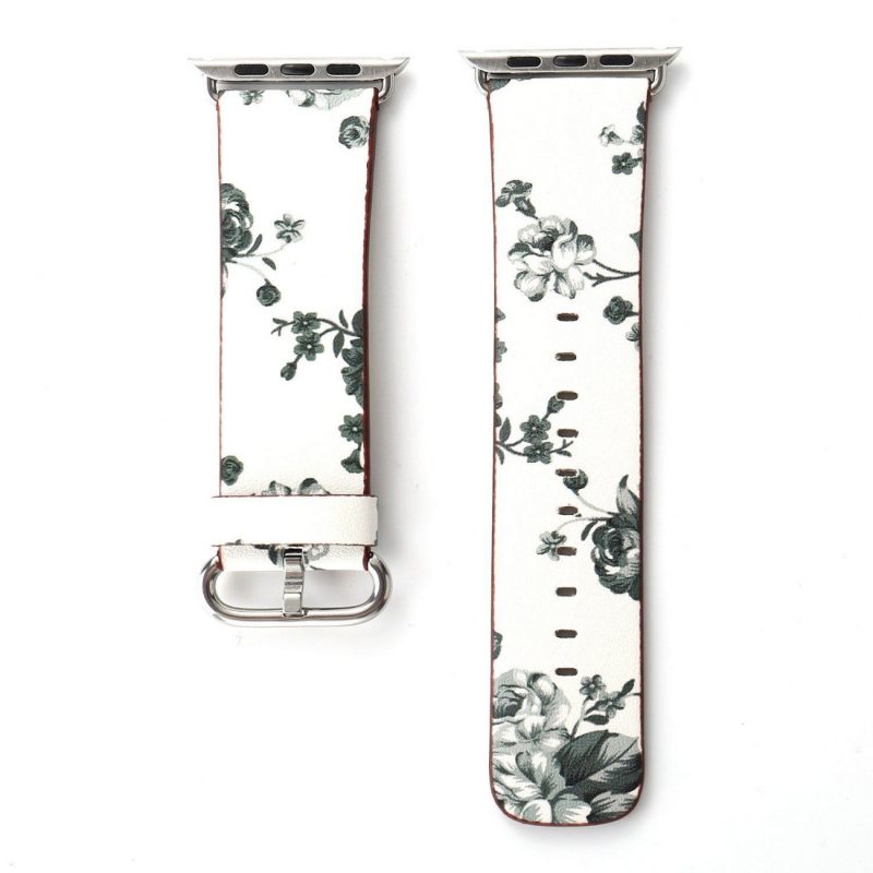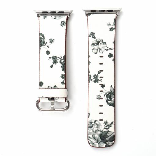 escală din piele florală pentru Apple Watch - Alb și Gri 42mm, 44mm, 45mm, 49mm