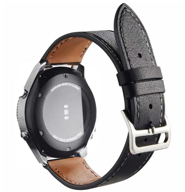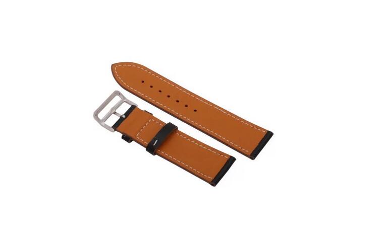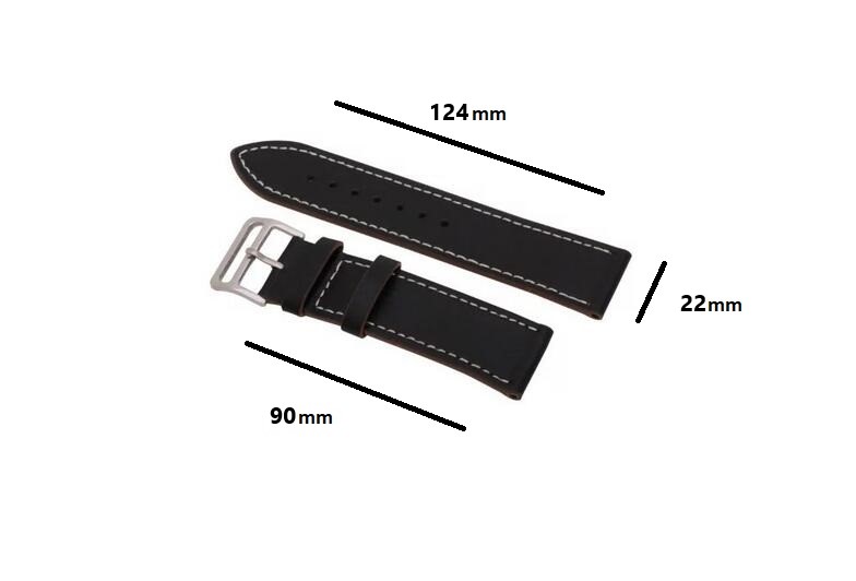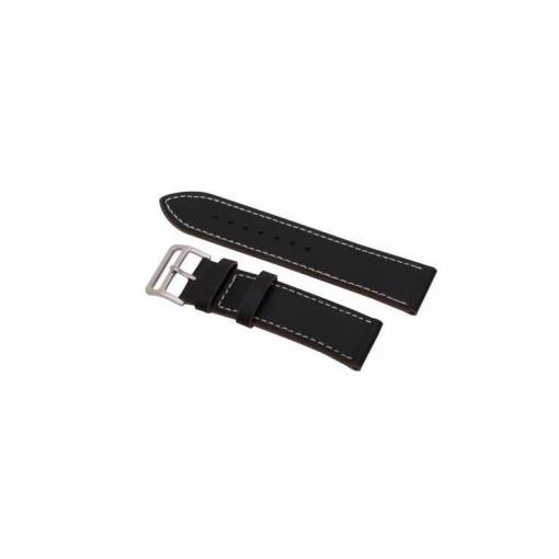 esel Brățară din piele netedă - Neagră cu alb pentru cusătură, 22 mm
