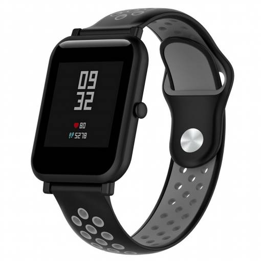 brățară din silicon perforată - Negru/Gri, 20 mm