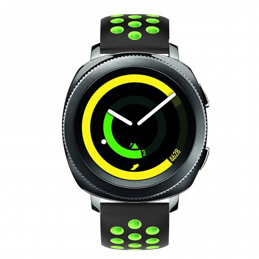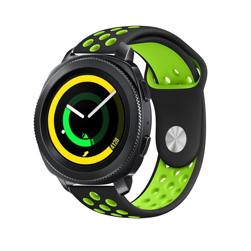 brățară din silicon perforată - Negru/Verde, 20 mm