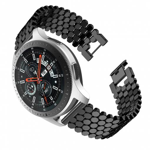 Curea din metal pentru ceas octogonal - Negru, 22 mm