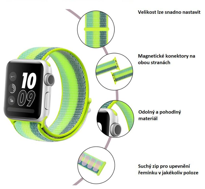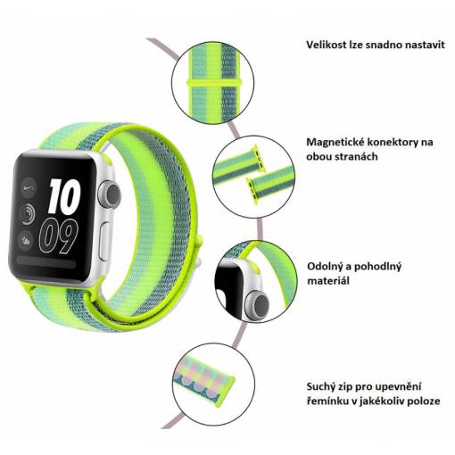 eses Bandă din nylon pentru Apple Watch - Dungi neon 38mm, 40mm, 41mm