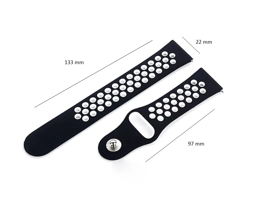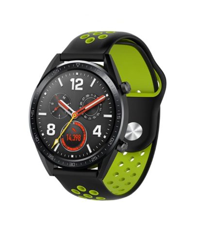 Brățară perforată din silicon - Negru și verde, 22 mm