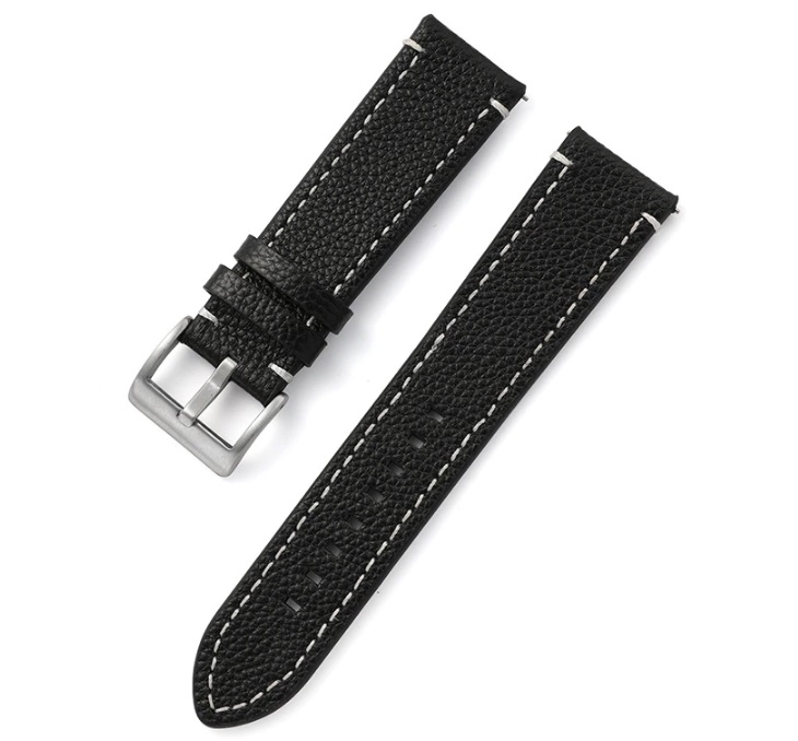 eses Curea din piele - Neagra cu cusaturi albe, 18 mm