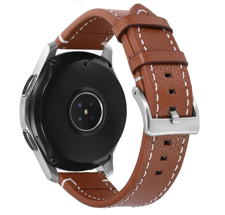 eses Curea din piele - Maro cu cusături albe, 18 mm