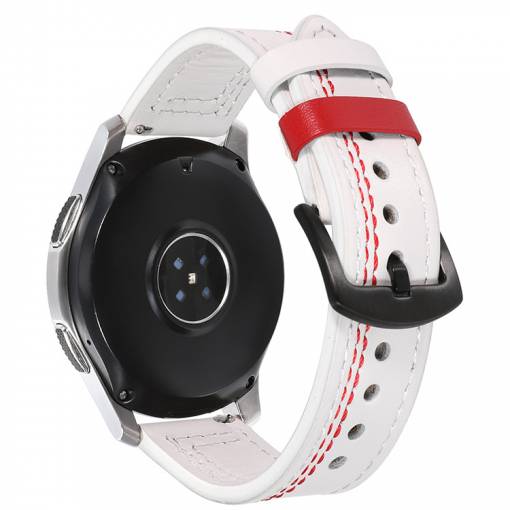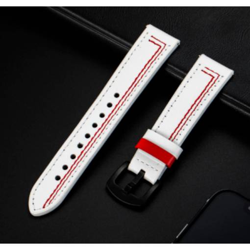 eses Curea din piele - Albă cu model roșu, 20 mm