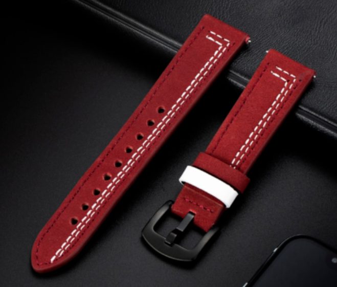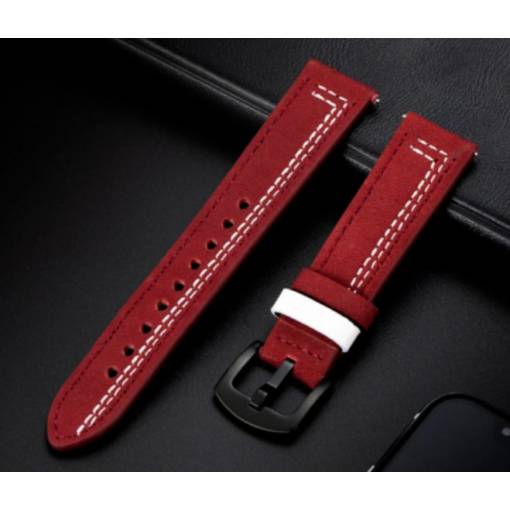 eses Curea din piele - Bordeaux cu cusături albe, 20 mm