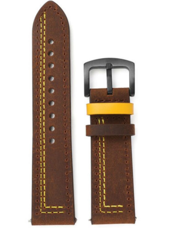 eses Curea din piele - Maro cu model galben, 20 mm