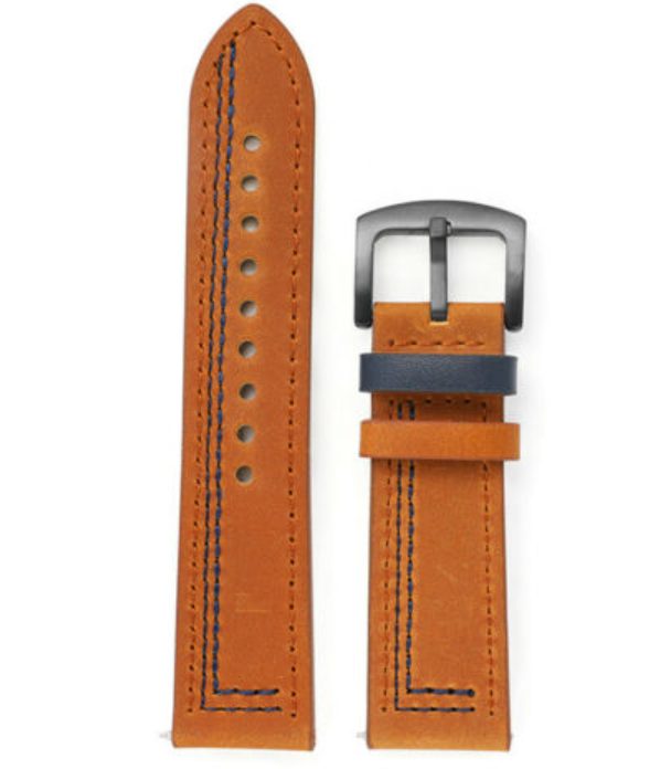 eses Curea din piele - Maro cu model albastru inchis, 22 mm