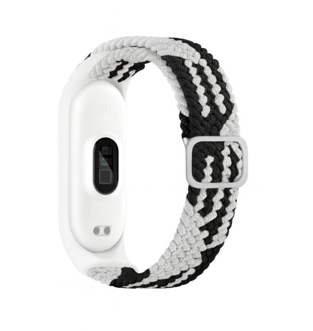 brățară țesută elastică pentru Xiaomi Mi Band 3, 4, 5 și 6 - Alb-Negru