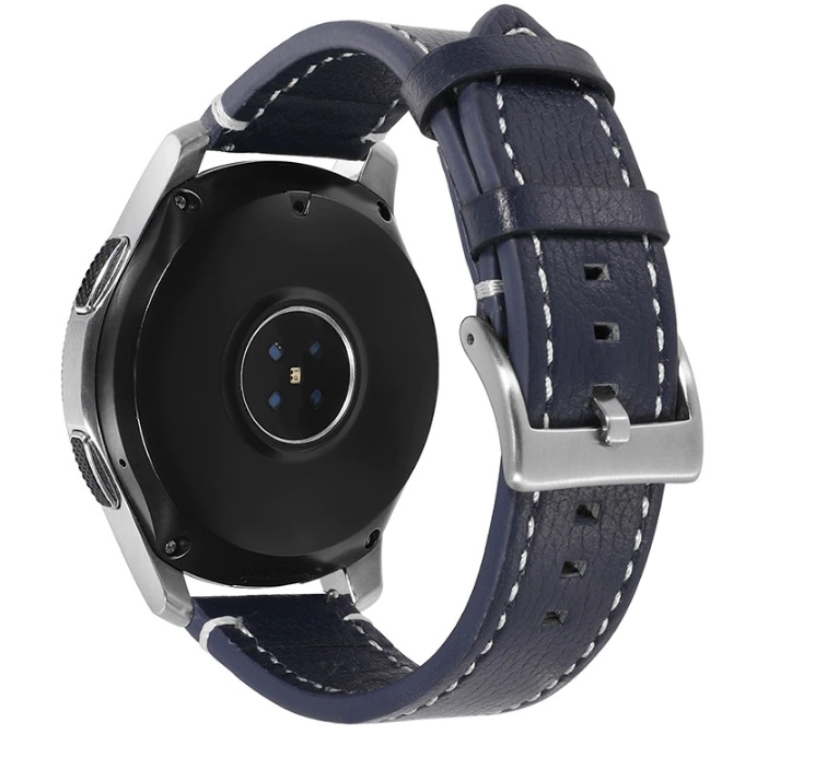 eses Curea din piele - Albastru închis cu cusături albe, 22 mm