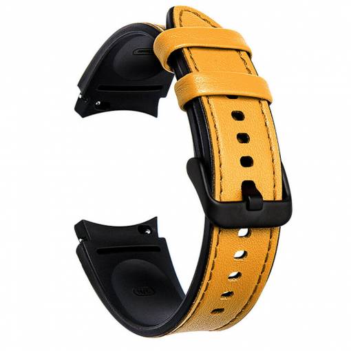 eses Sportovní kožený řemínek pro Samsung Galaxy Watch 4, 5, 6 - Oranžovo žlutý, 20 mm