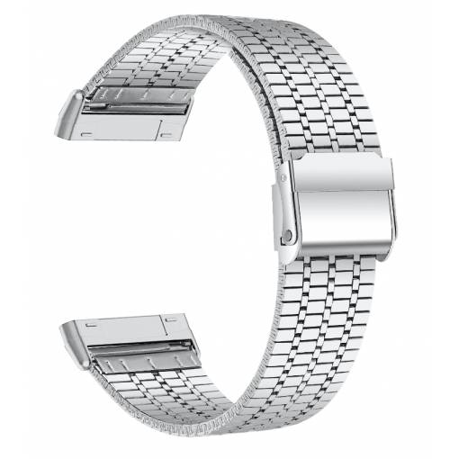 eses Kovový řemínek trojitý pro Fitbit Versa 3 a 4, Sense 1 a 2 - Stříbrný