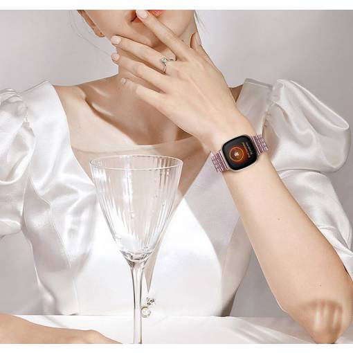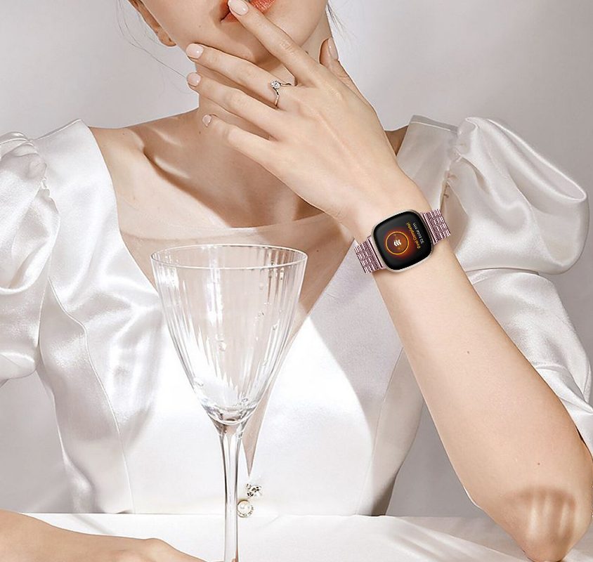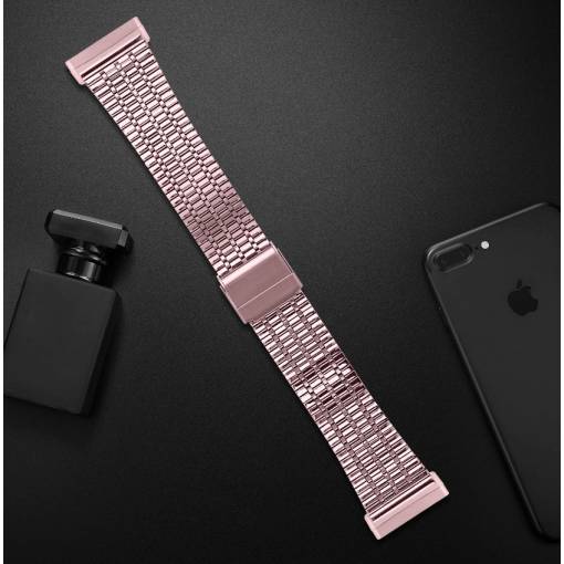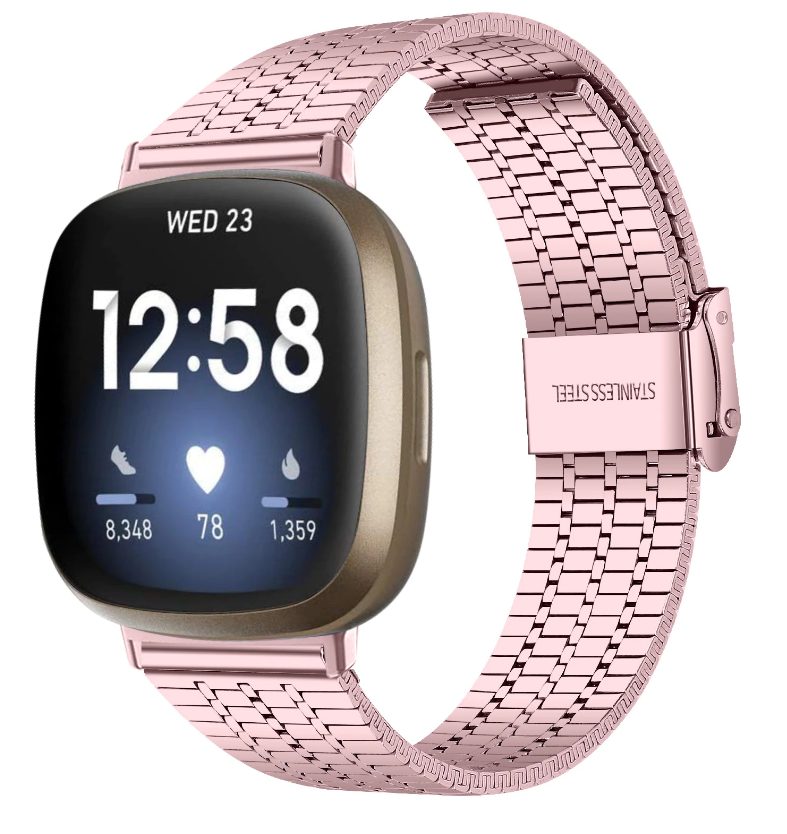 eses Kovový řemínek trojitý pro Fitbit Versa 3 a 4, Sense 1 a 2 - Růžový