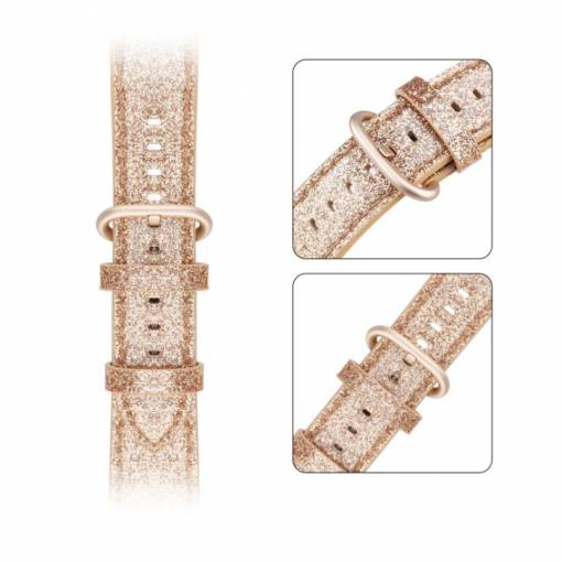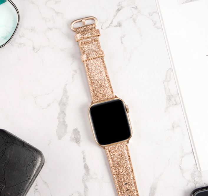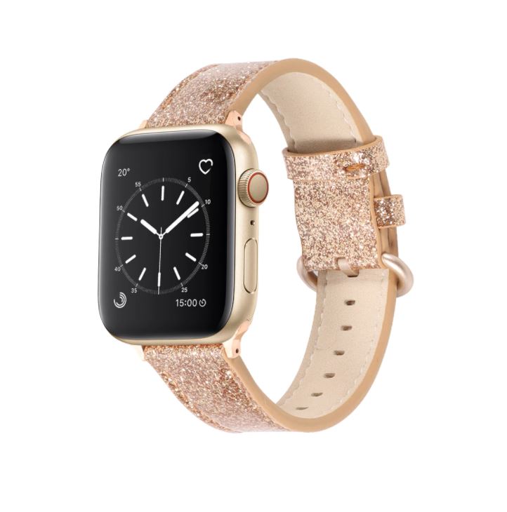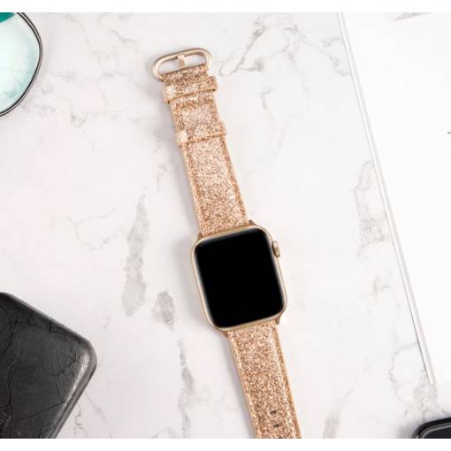 eses Kožený glitrový řemínek pro Apple Watch - Zlatý 42mm, 44mm, 45mm, 49mm