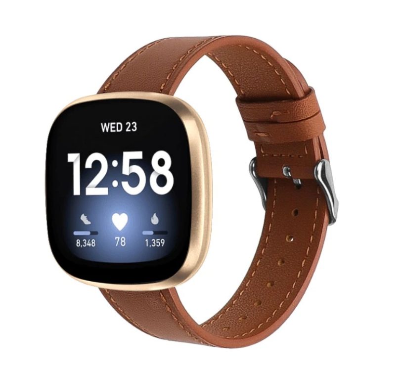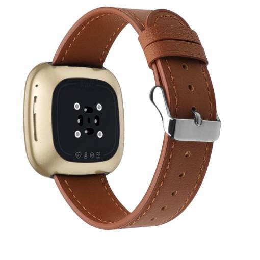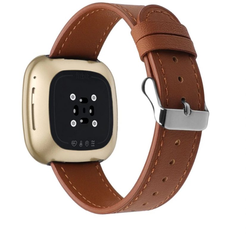 eses Kožený řemínek pro Fitbit Versa 3 a 4, Sense 1 a 2 - Hnědý s prošíváním