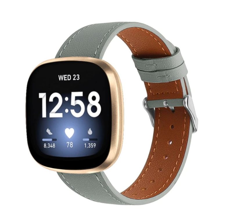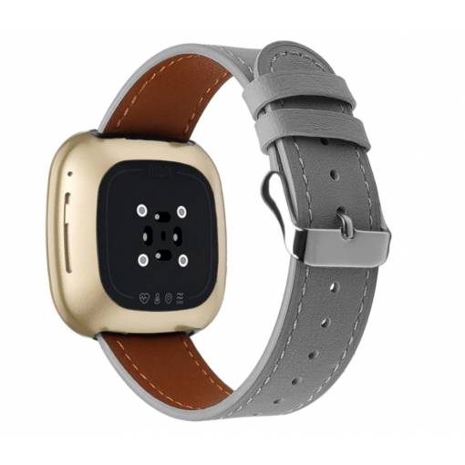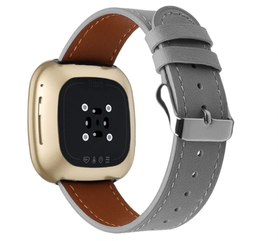 eses Kožený řemínek pro Fitbit Versa 3/4, Sense 1/2 - Šedý s prošíváním