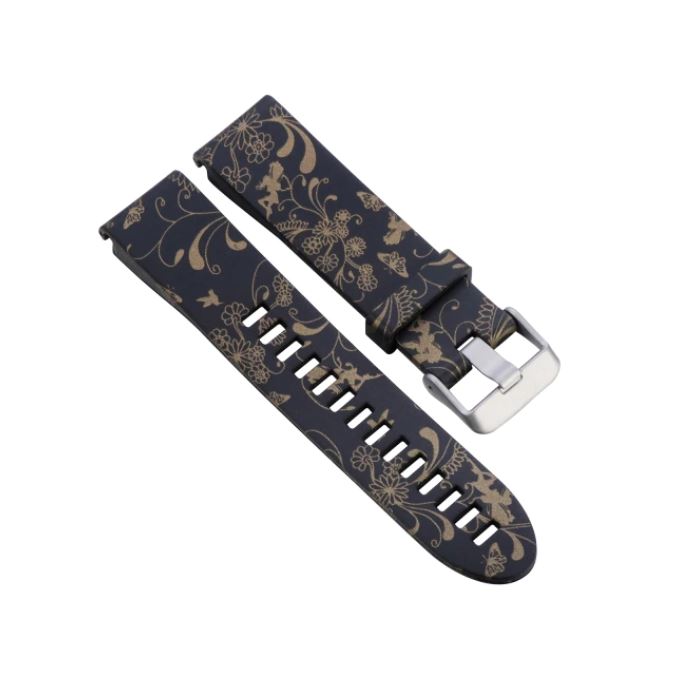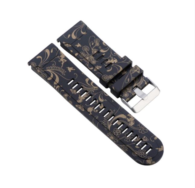 eses Silikonový řemínek pro Garmin - Vzorovaný se zlatými květy, QuickFit 22 mm