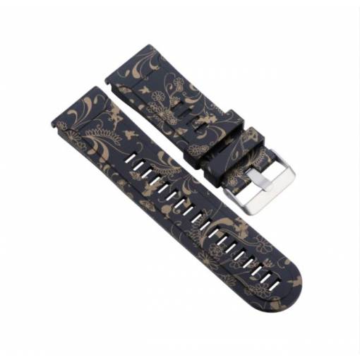 eses Silikonový řemínek pro Garmin - Vzorovaný se zlatými květy, QuickFit 26 mm