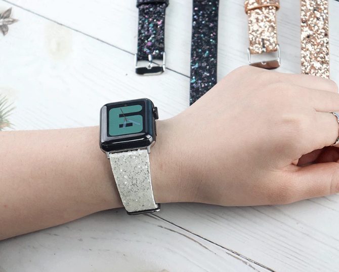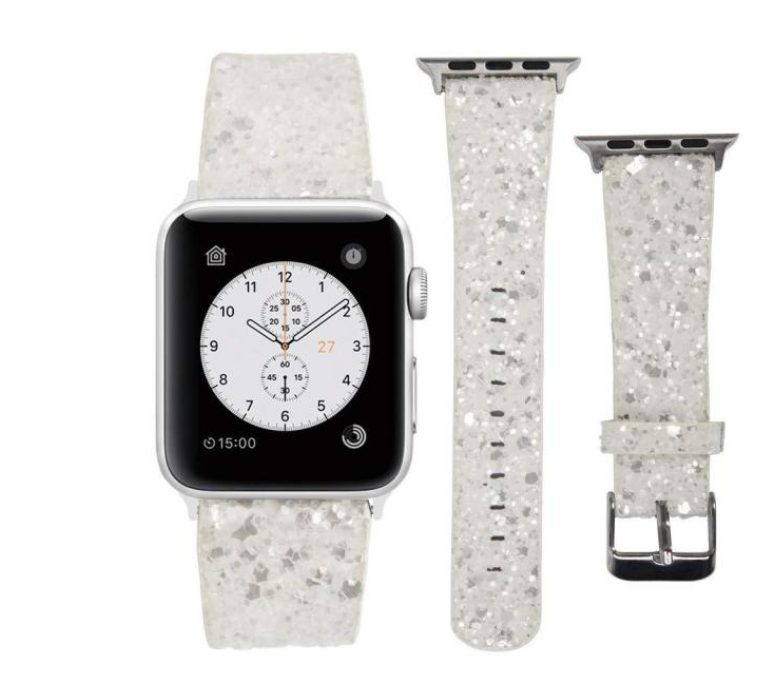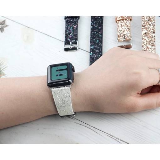 eses Kožený flitrový řemínek pro Apple Watch - Bílý, 42mm/44mm/45mm/49mm