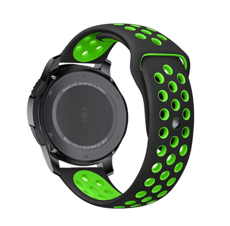 eses Silikonový dírkovaný řemínek - Černo zelený, 18 mm