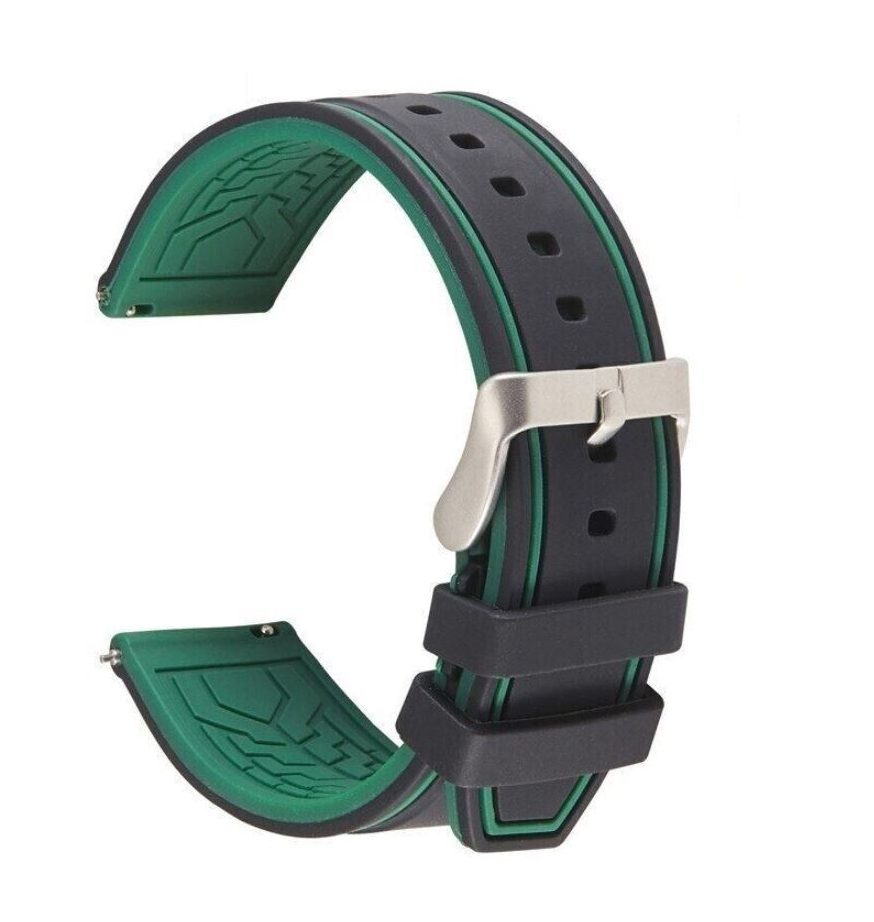 eses Silikonový řemínek dvoubarevný proužek - Černo zelený, 20 mm