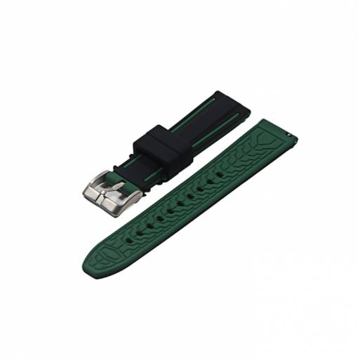 eses Silikonový řemínek dvoubarevný proužek - Černo zelený, 22 mm