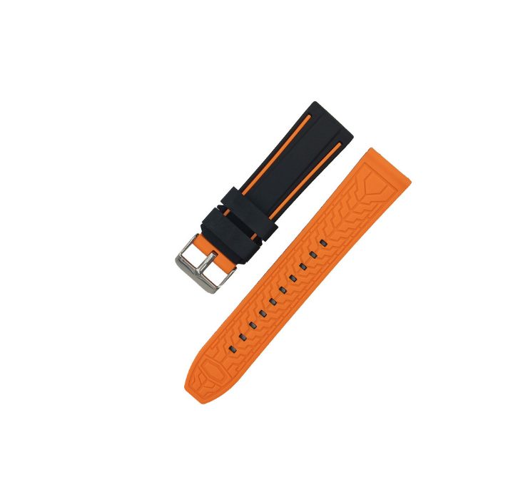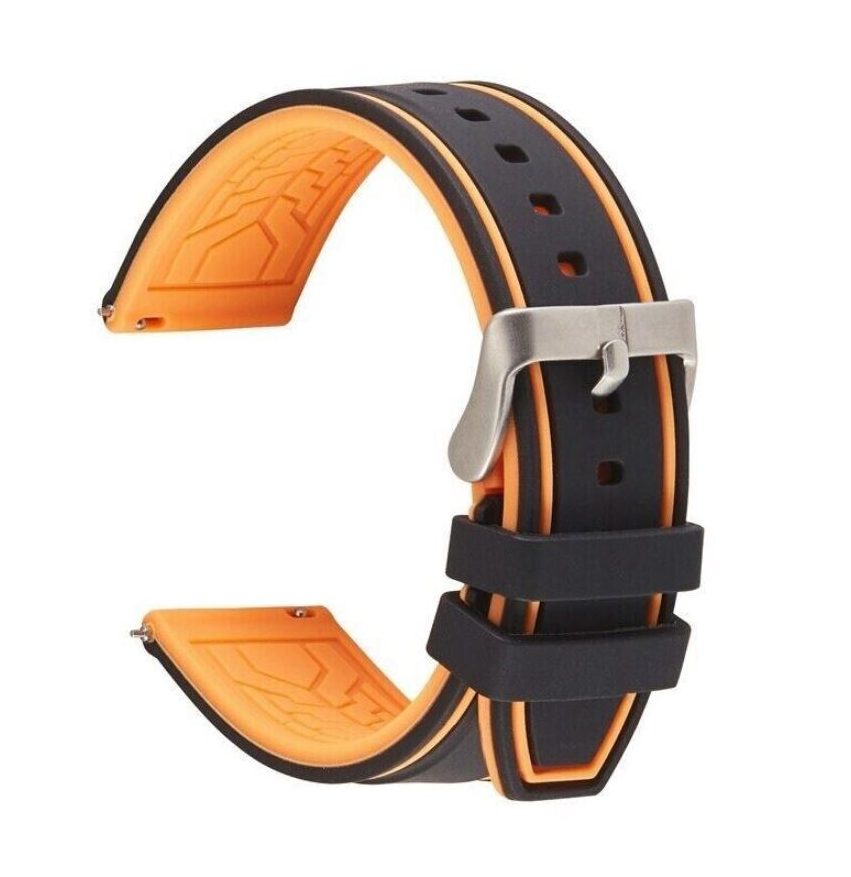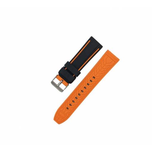 eses Silikonový řemínek dvoubarevný proužek - Oranžovo černý, 24 mm
