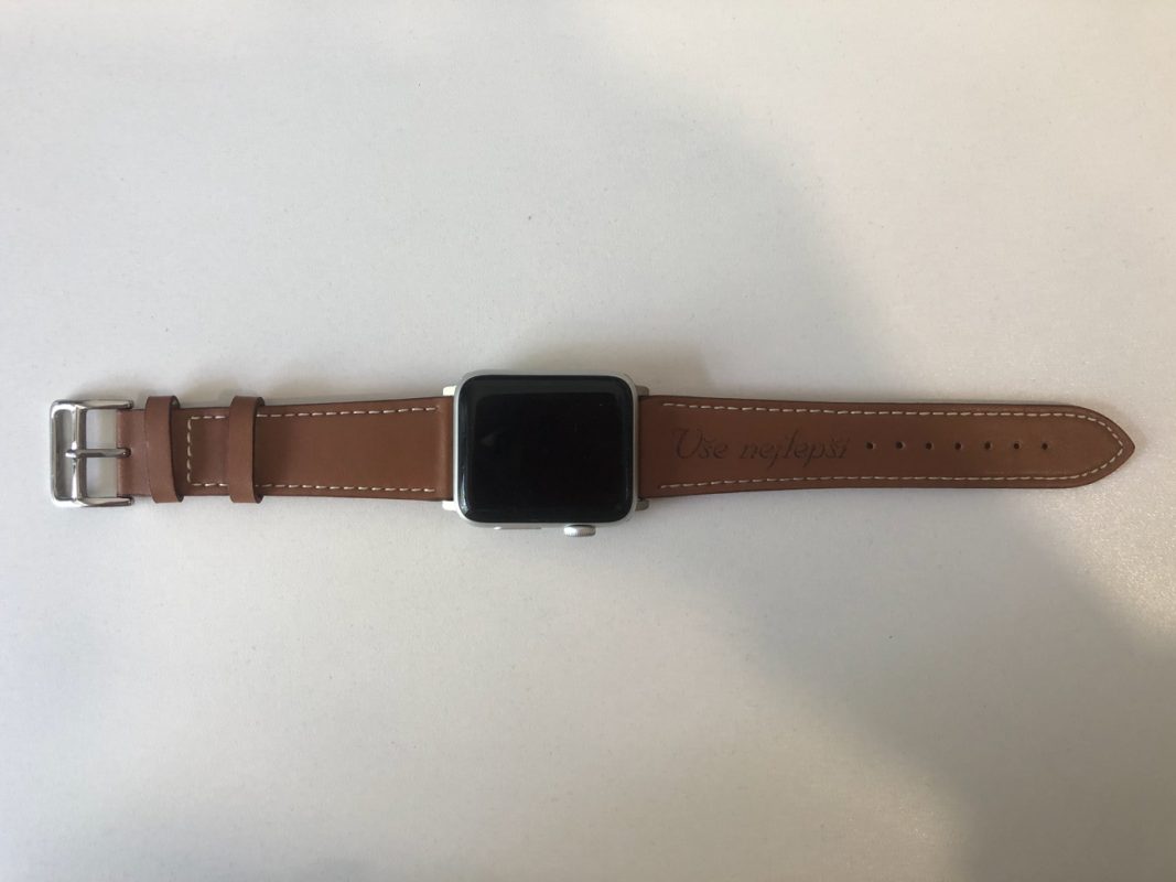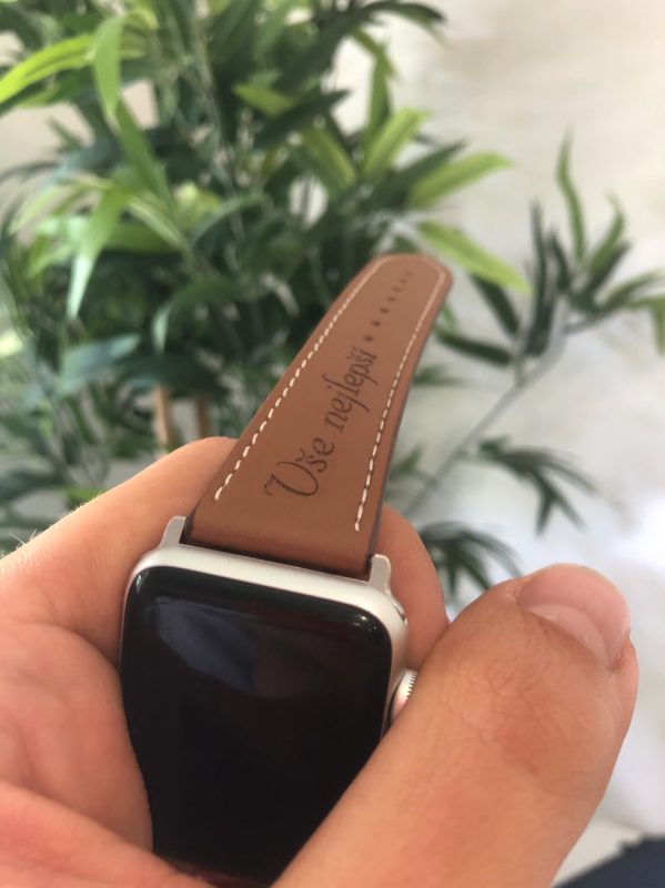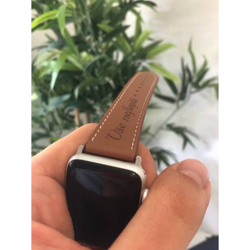 eses Kožený řemínek 42mm/44mm/45mm/49mm pro Apple Watch - S gravírováním "Vše nejlepší", hnědý