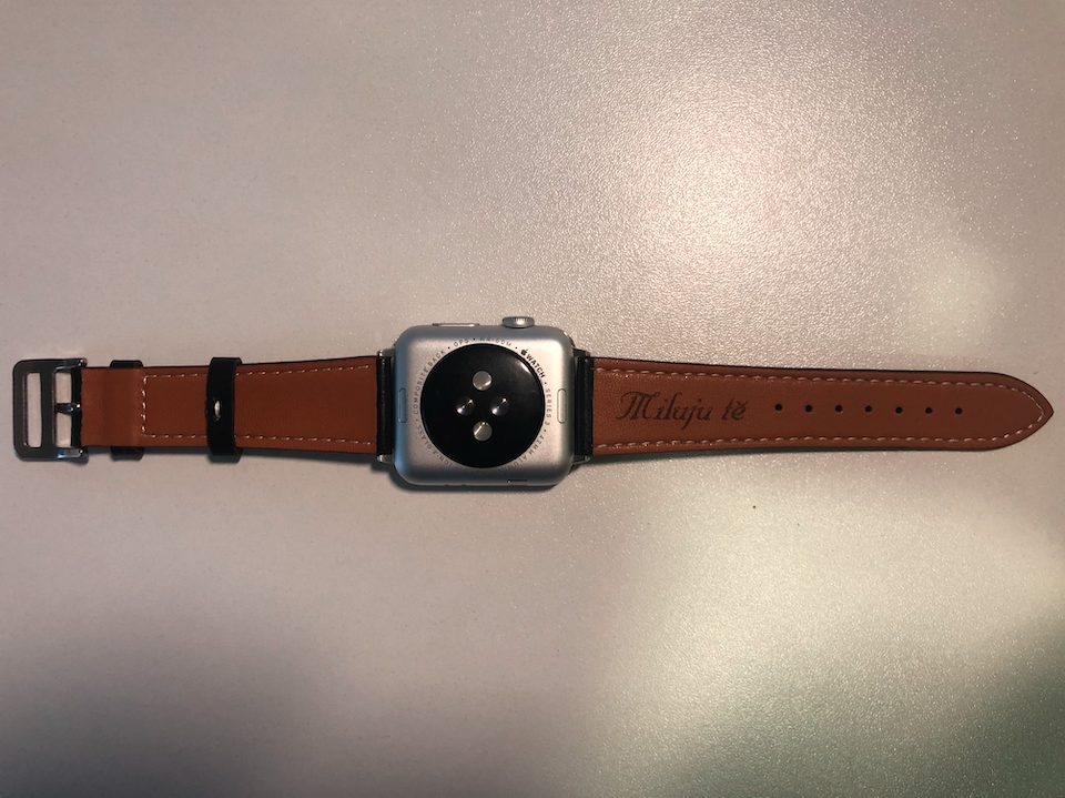 eses kožený řemínek s gravírováním "Miluji tě" pro Apple Watch černý s bílým prošíváním 42mm/44mm/45mm