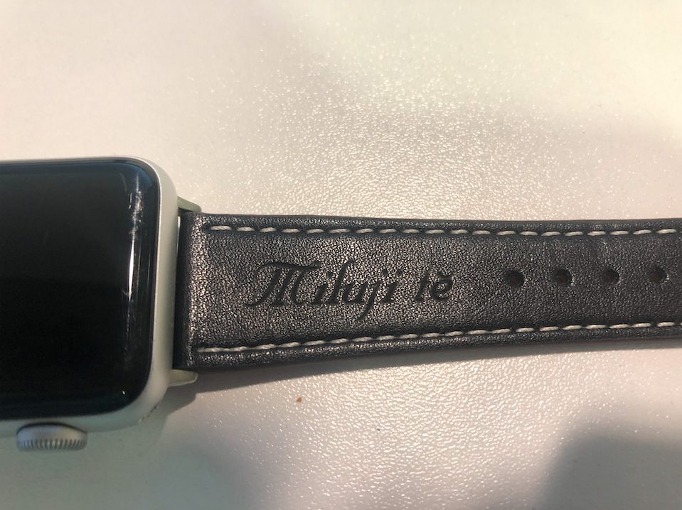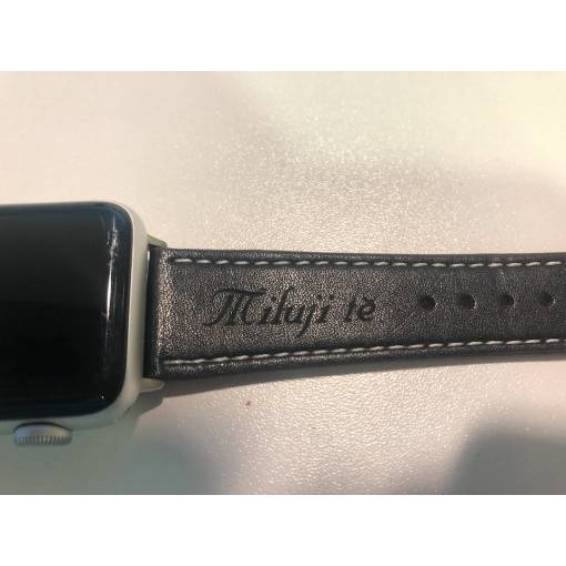eses kožený řemínek s gravírováním "Miluji tě" pro Apple Watch černý s bílým prošíváním 42mm/44mm/45mm