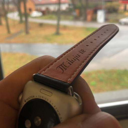 eses Kožený řemínek 38mm/40mm/41mm pro Apple Watch - S gravírováním "Miluji tě", černý s bílým prošíváním