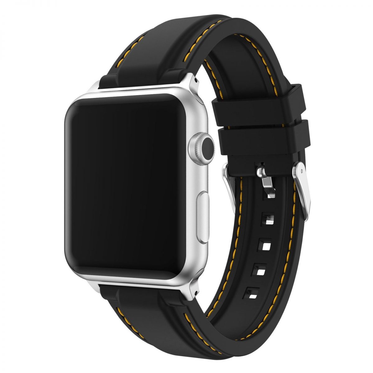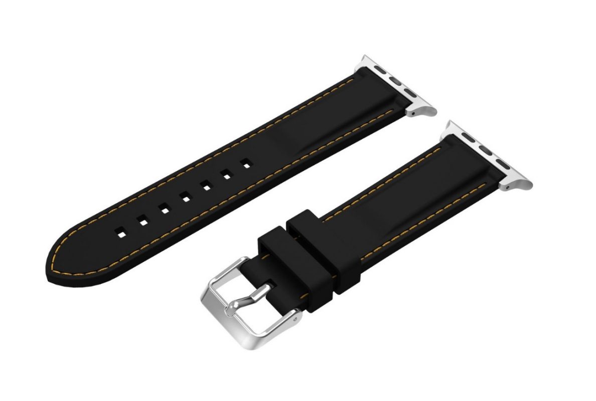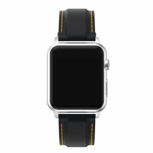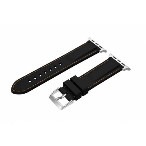 eses Silikonový řemínek 38mm/40mm černý se žlutým prošíváním pro Apple Watch