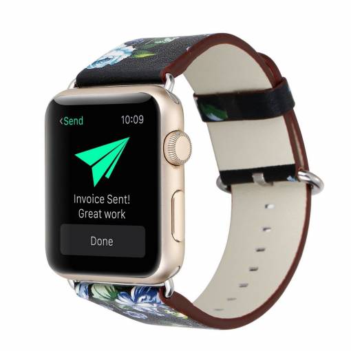 eses Kožený květinový řemínek pro Apple Watch - Černý a modrý 42mm, 44mm, 45mm, 49mm