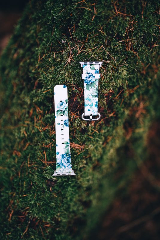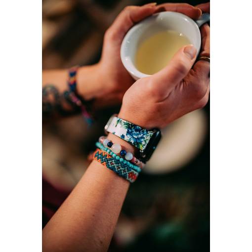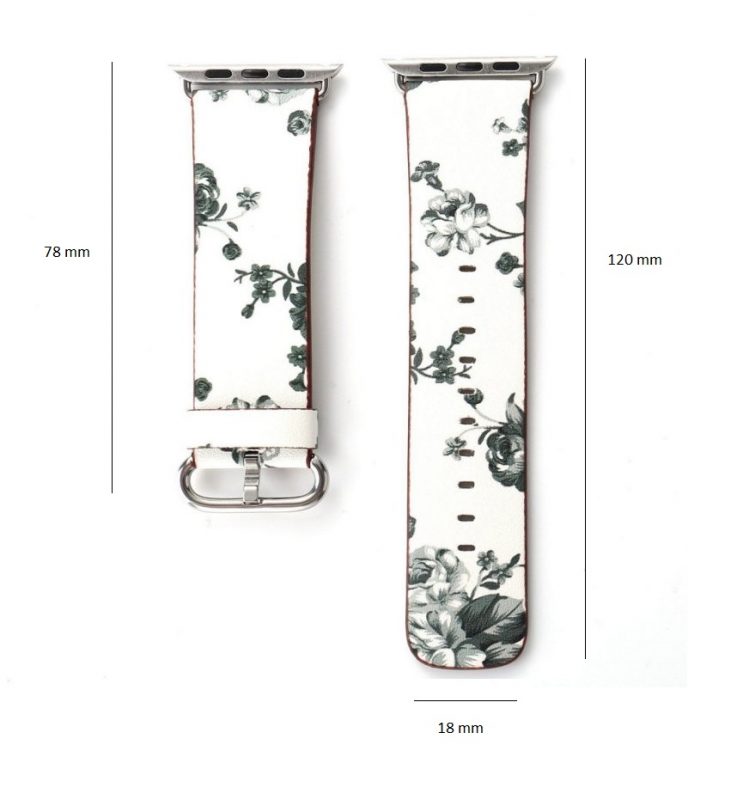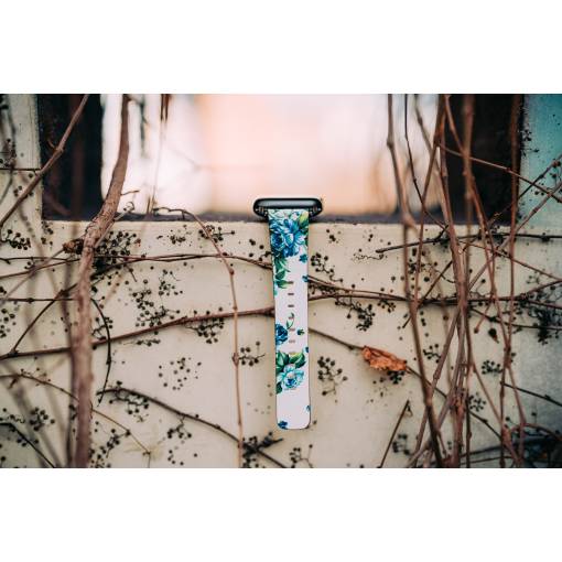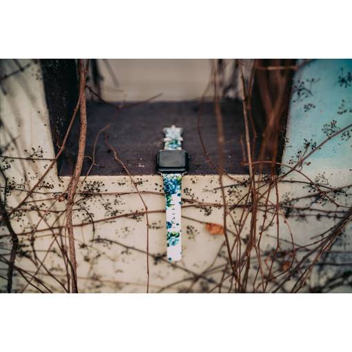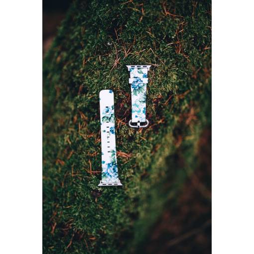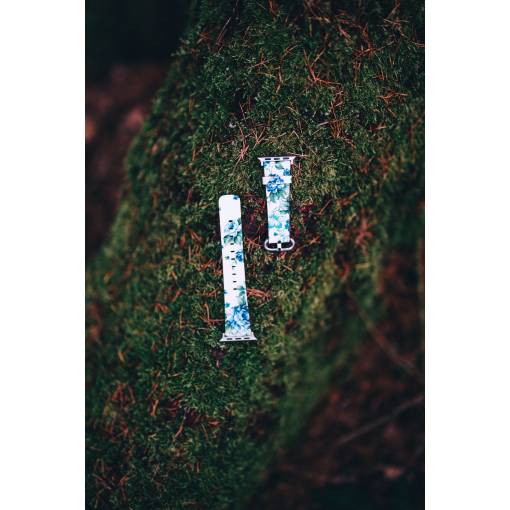 eses Kožený květinový řemínek pro Apple Watch - Bílý a modrý 38mm, 40mm, 41mm