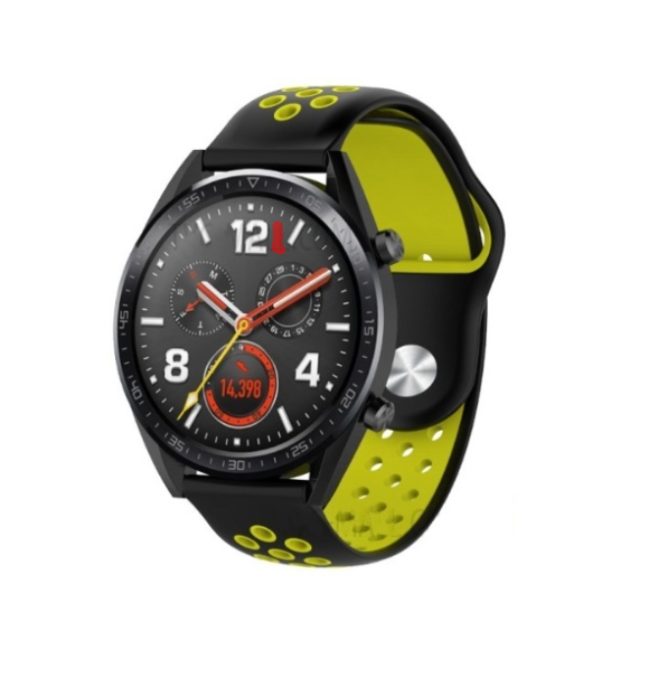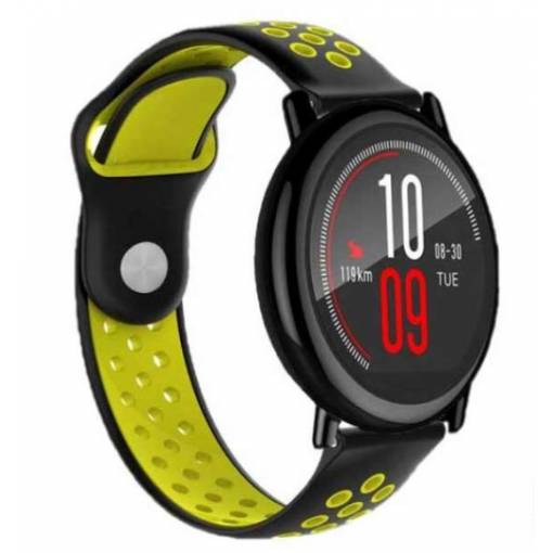 eses Curea perforata din silicon - Negru galben, 22 mm