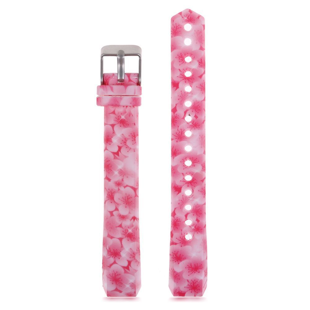 eses Silikonový řemínek růžový s kytičkami pro Fitbit Alta HR