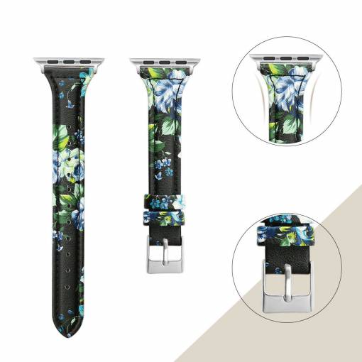 eses Kožený úzký řemínek pro Apple Watch - Květinový, černo modrý 42mm, 44mm, 45mm, 49mm