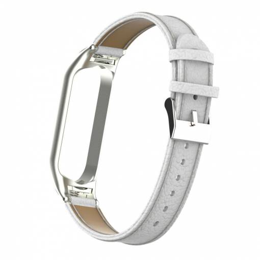 eses Kožený řemínek pro Xiaomi Mi Band 5 a Xiaomi Mi Band 6 - Bílý
