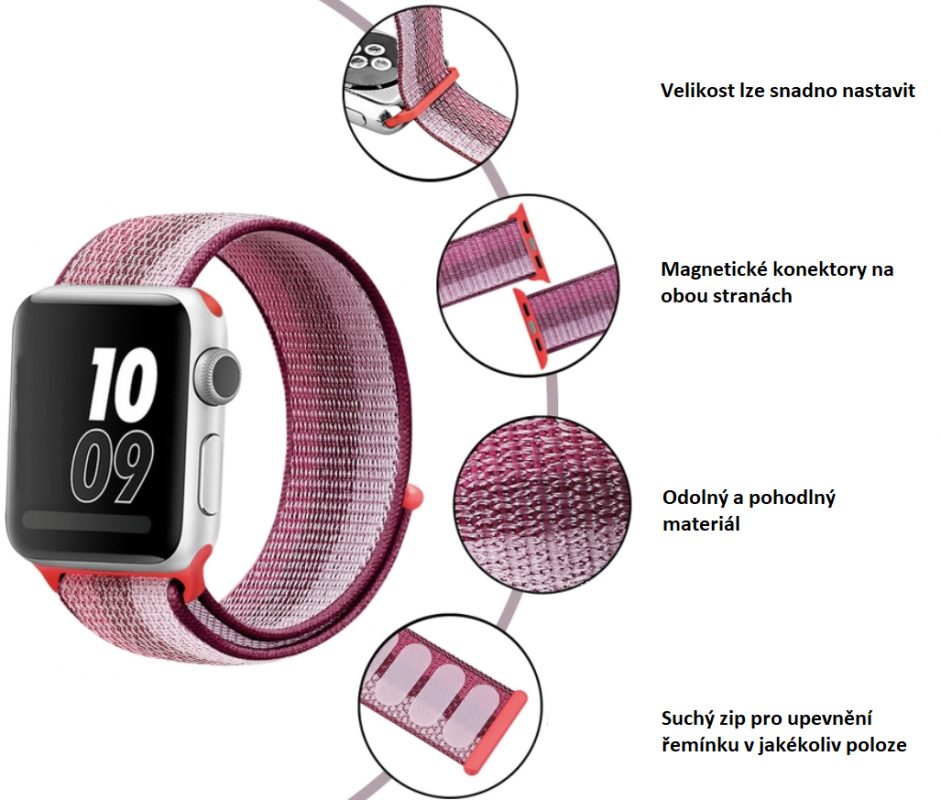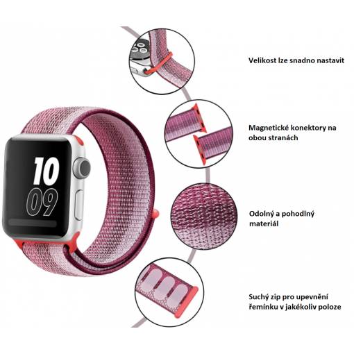 eses Nylonový řemínek pro Apple Watch - Červený proužek 42mm, 44mm, 45mm, 49mm