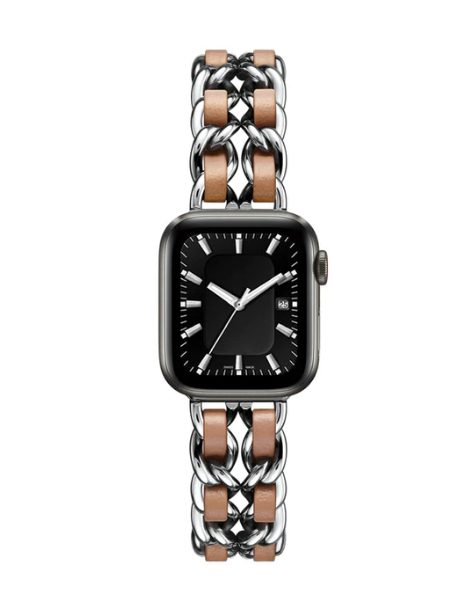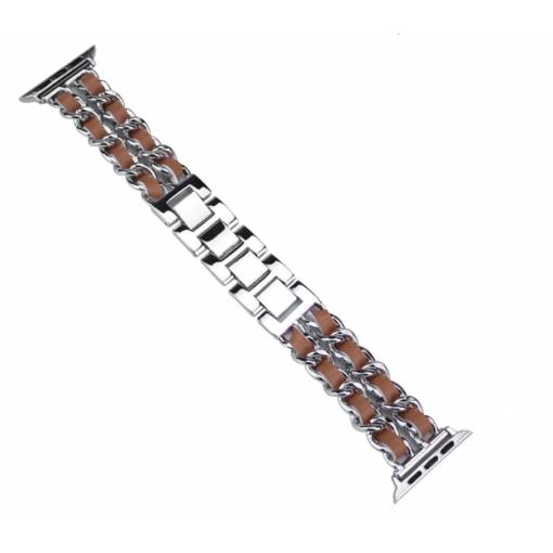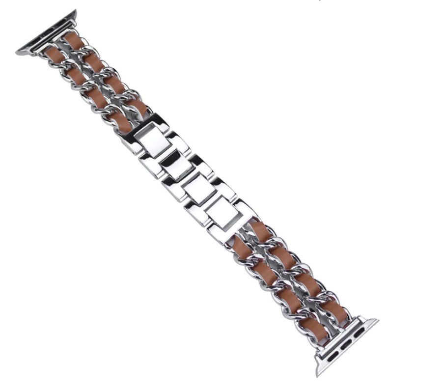 eses Kovový řetízkový řemínek propletený pro Apple Watch - Stříbrno hnědý 42mm, 44mm, 45mm, 49mm