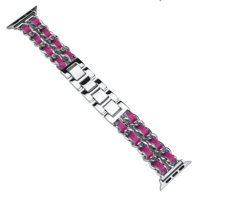 eses Kovový řetízkový řemínek propletený pro Apple Watch - Stříbrný a tmavě růžový 38mm, 40mm, 41mm