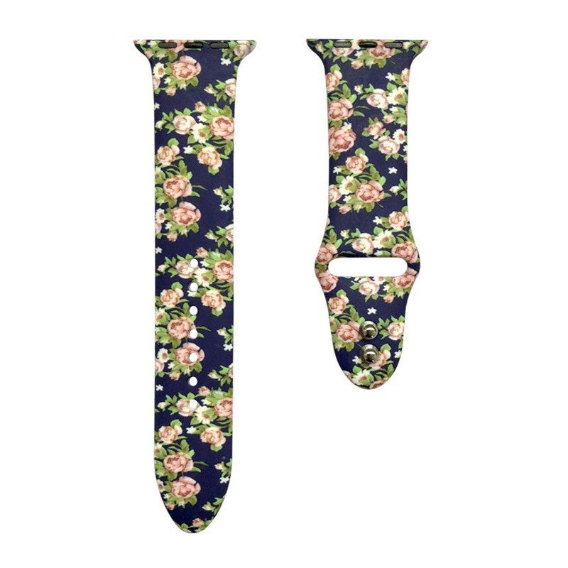 eses Silikonový řemínek pro Apple Watch - Modrý s růžičkami 38mm, 40mm, 41mm